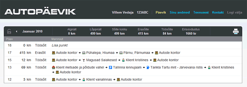 Kui pead sõidupäevikut täitma ning soovid säästa aega ja raha, oled leidnud lihtsaima lahenduse. Autopaevik.ee abil on Sinu autosõitude ülesmärkimine kiire ja mugav.